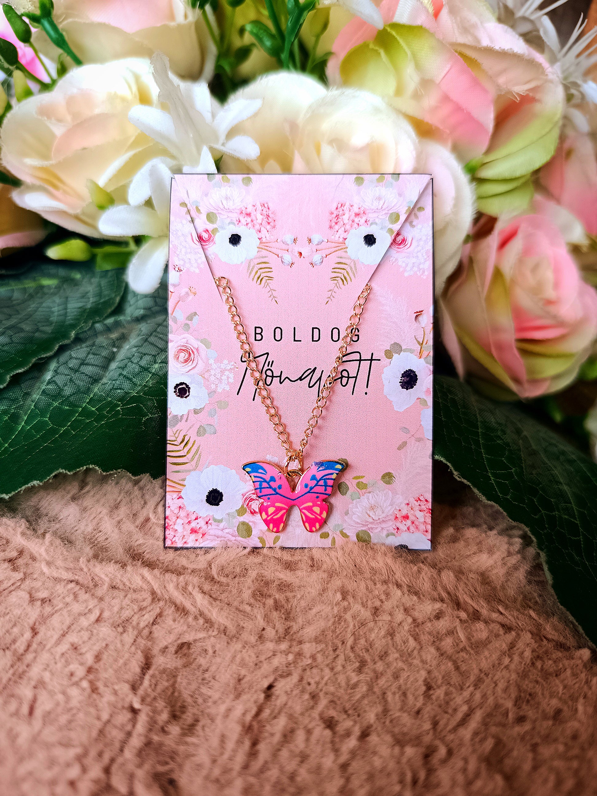 Ajándék nőnapra pillangós nyaklánc rózsaszín