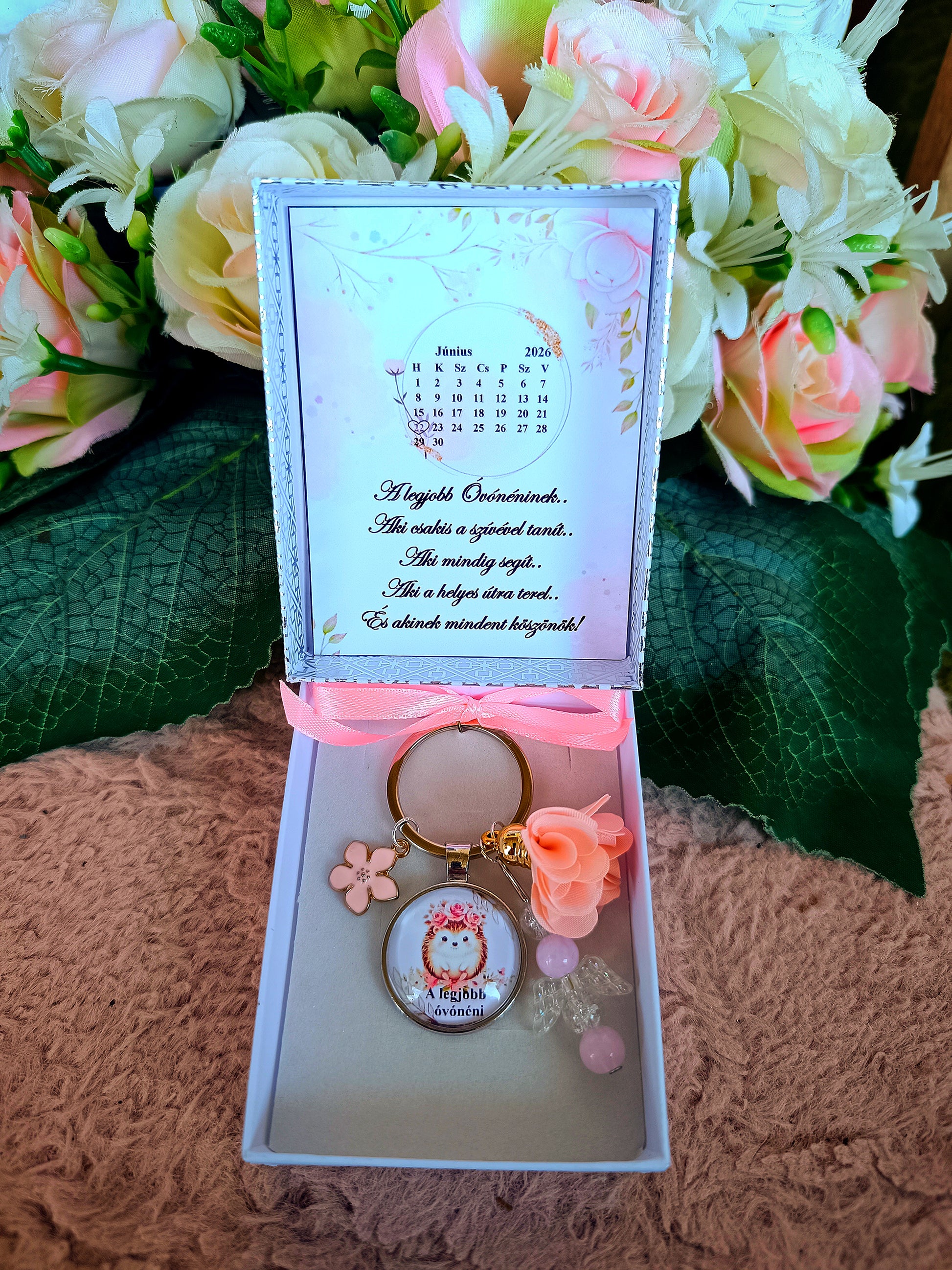 Ajándék pedagógusnak, óvónéninek egyedi kulcstartó sünis