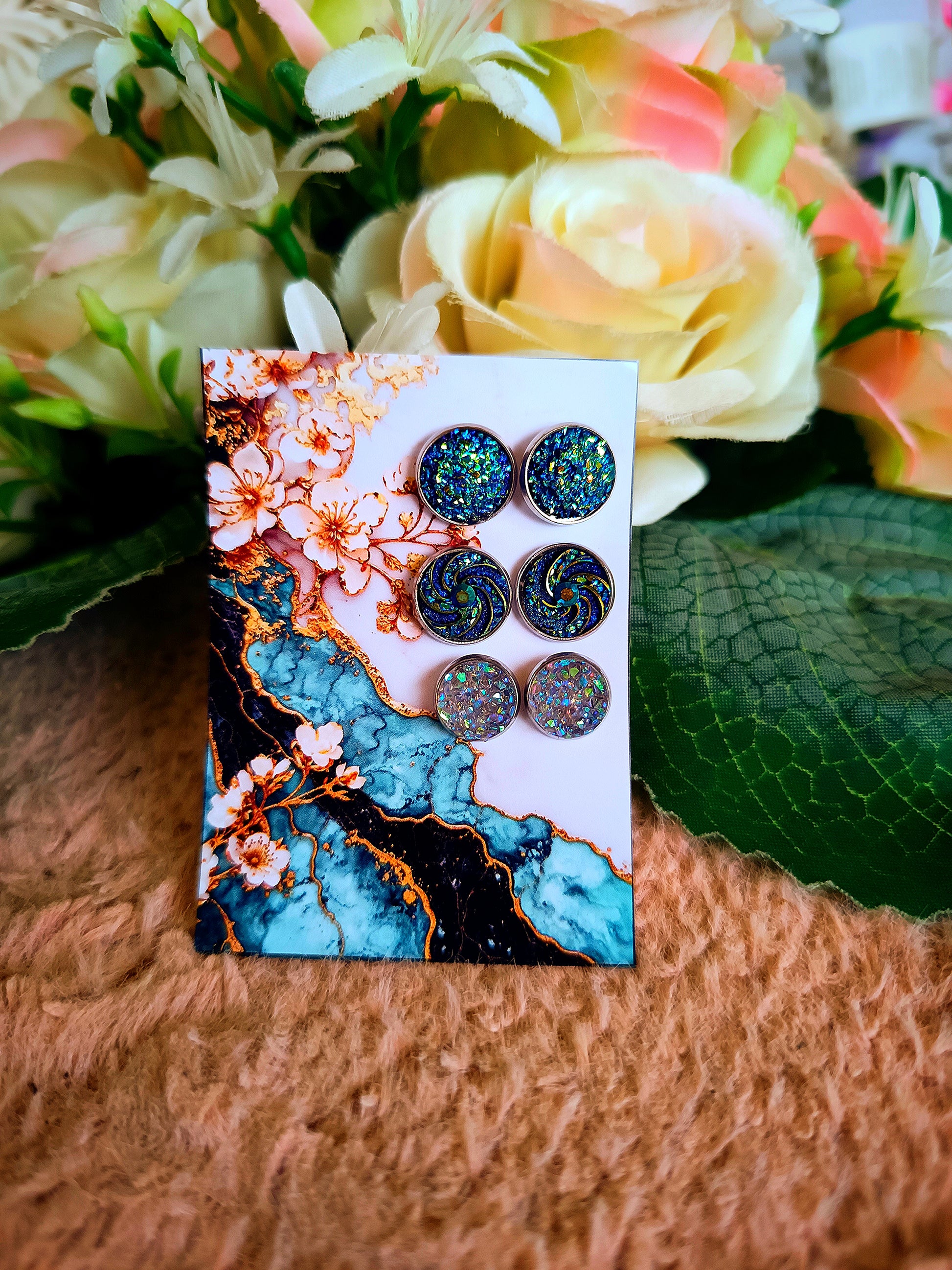 Kék bedugós nikkelmentes fülbevaló szett II
