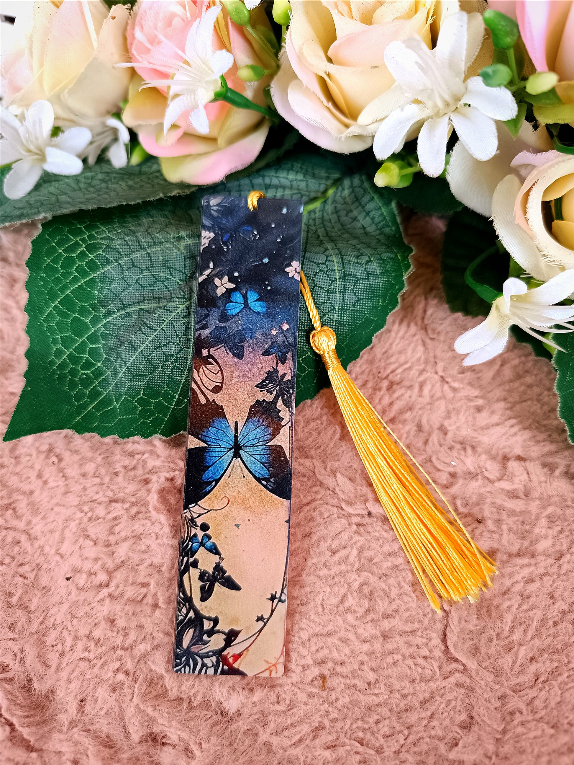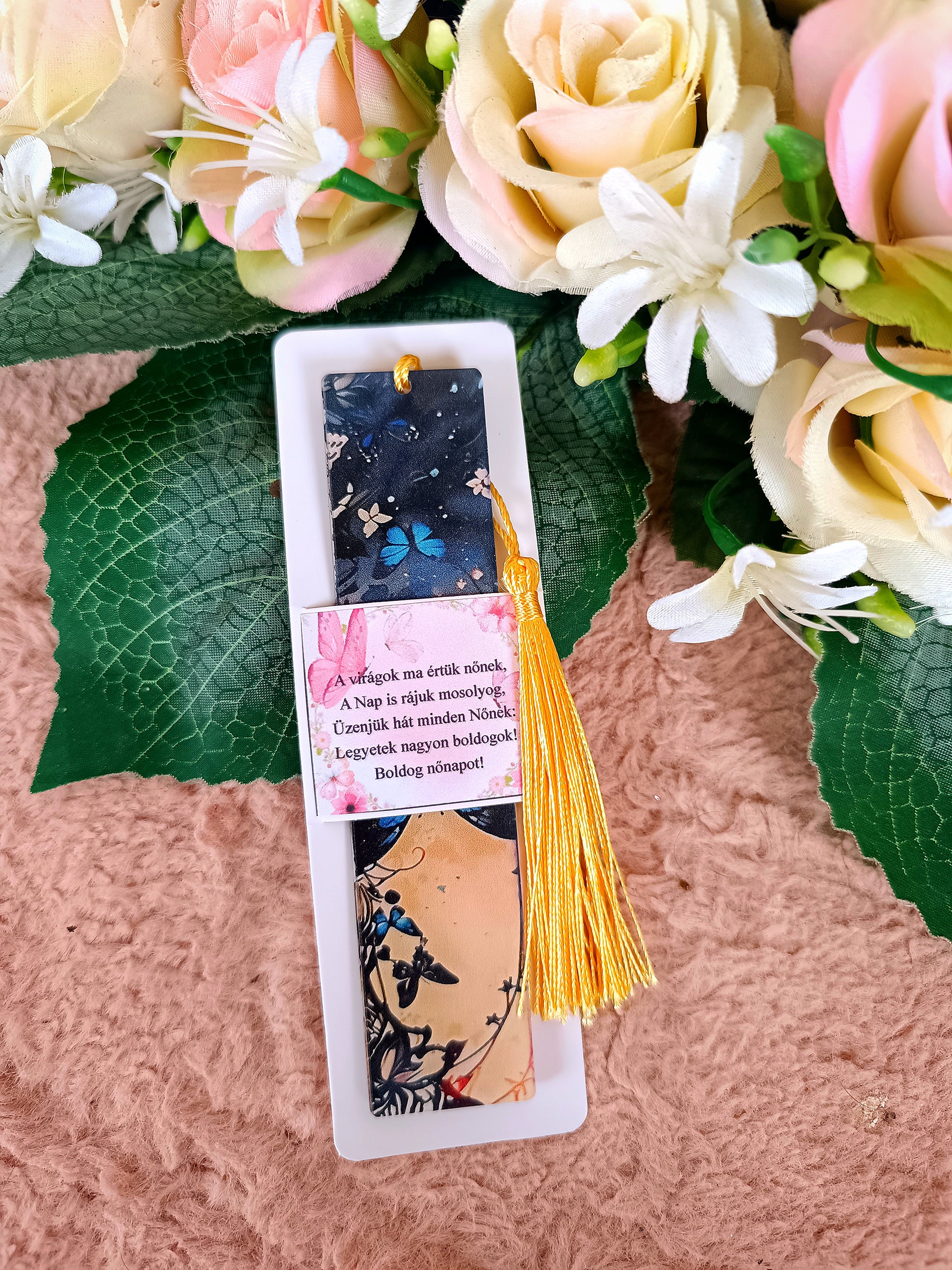 Nőnapi ajándék pillangós könyvjelző kék-sárga