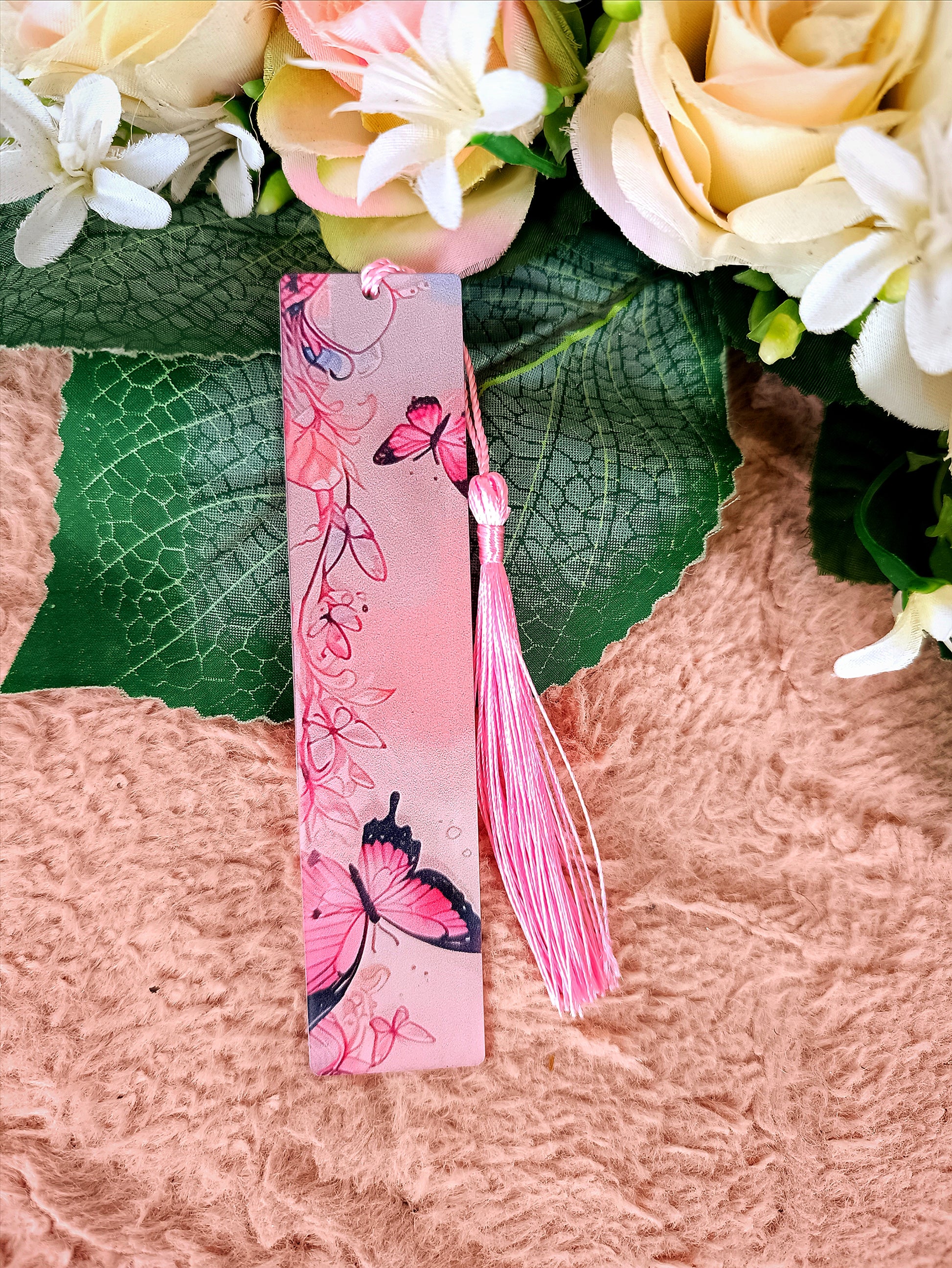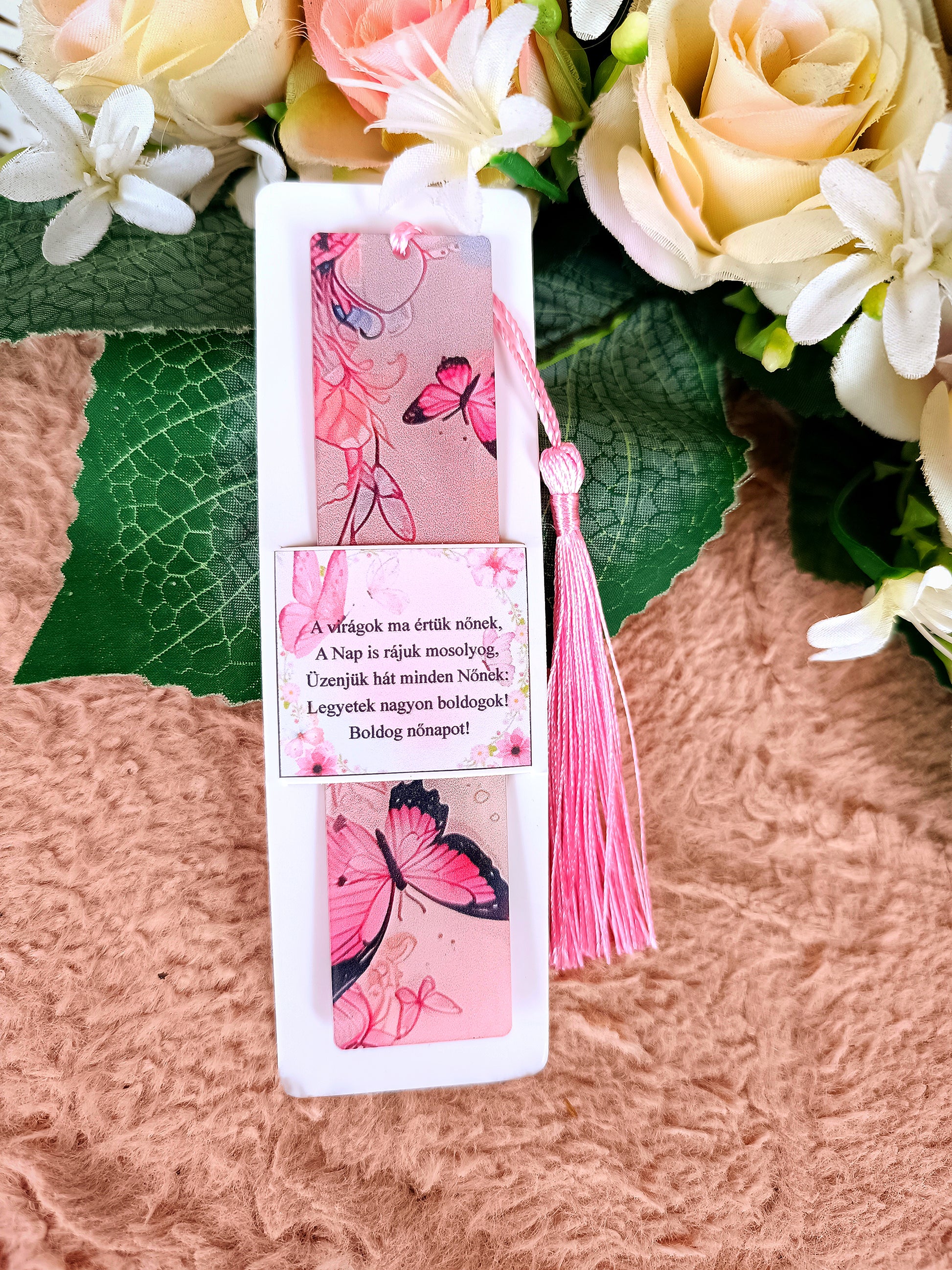 Nőnapi ajándék pillangós könyvjelző rózsaszín