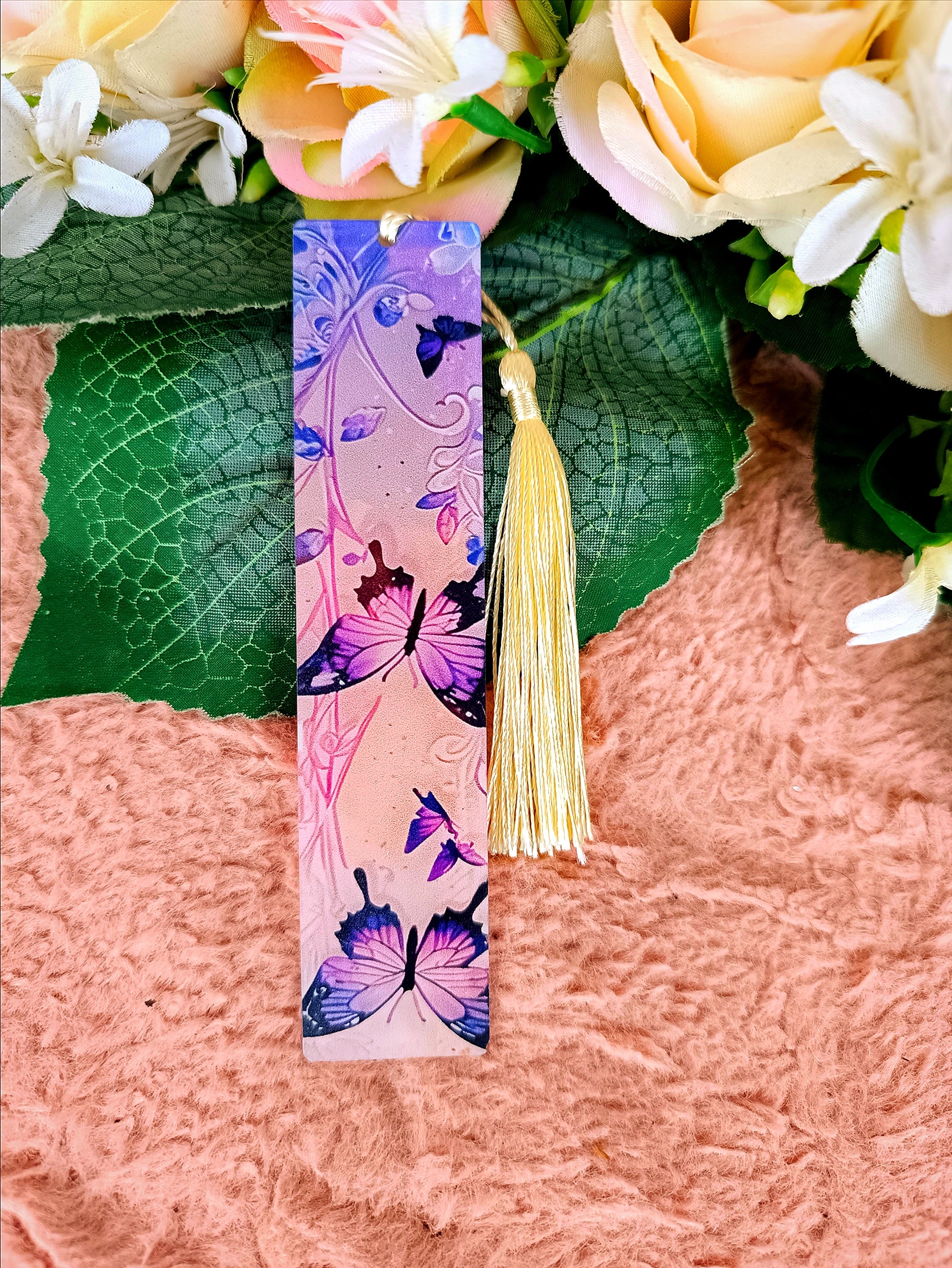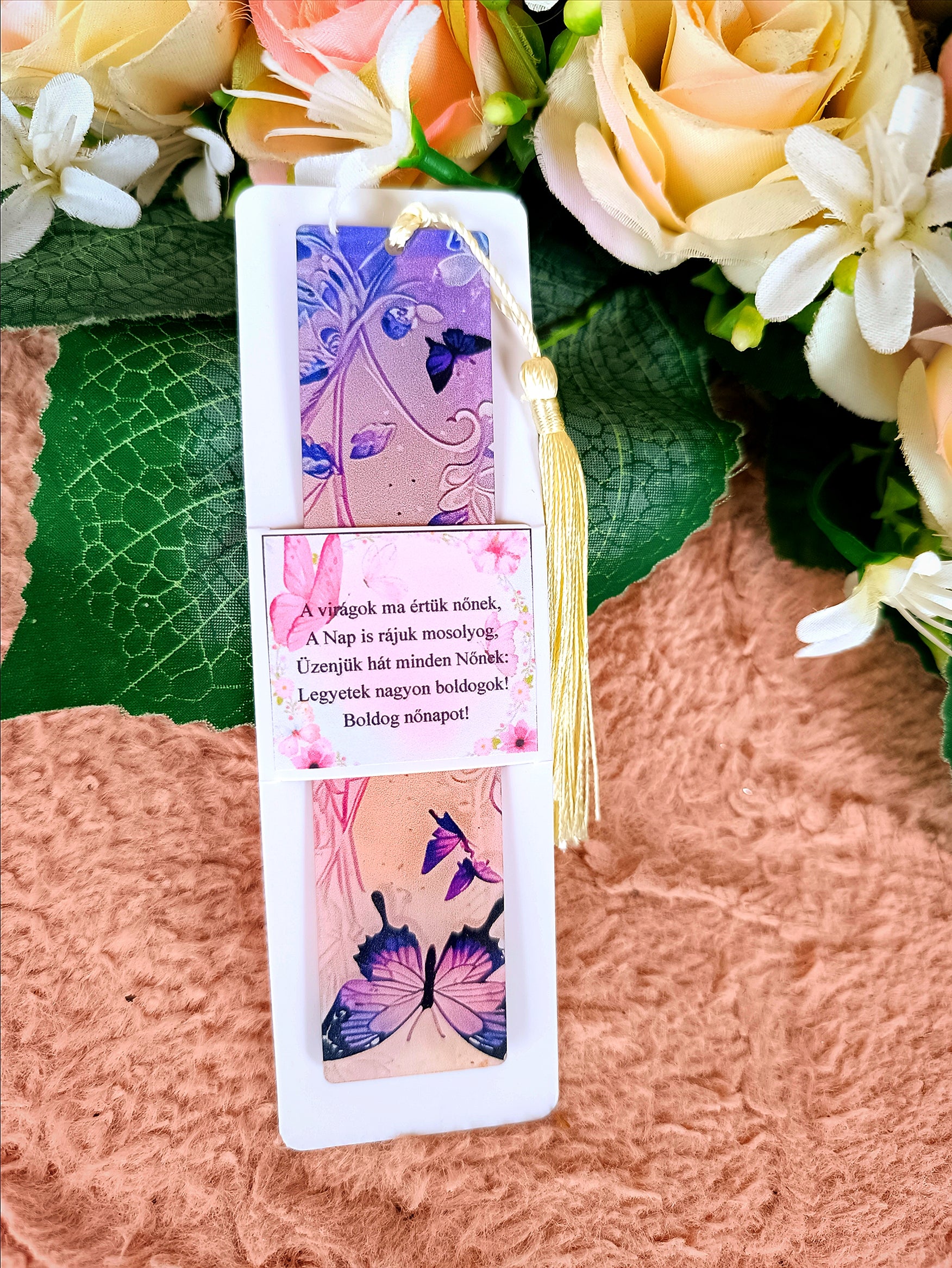Nőnapi ajándék pillangós könyvjelző kék-fehér