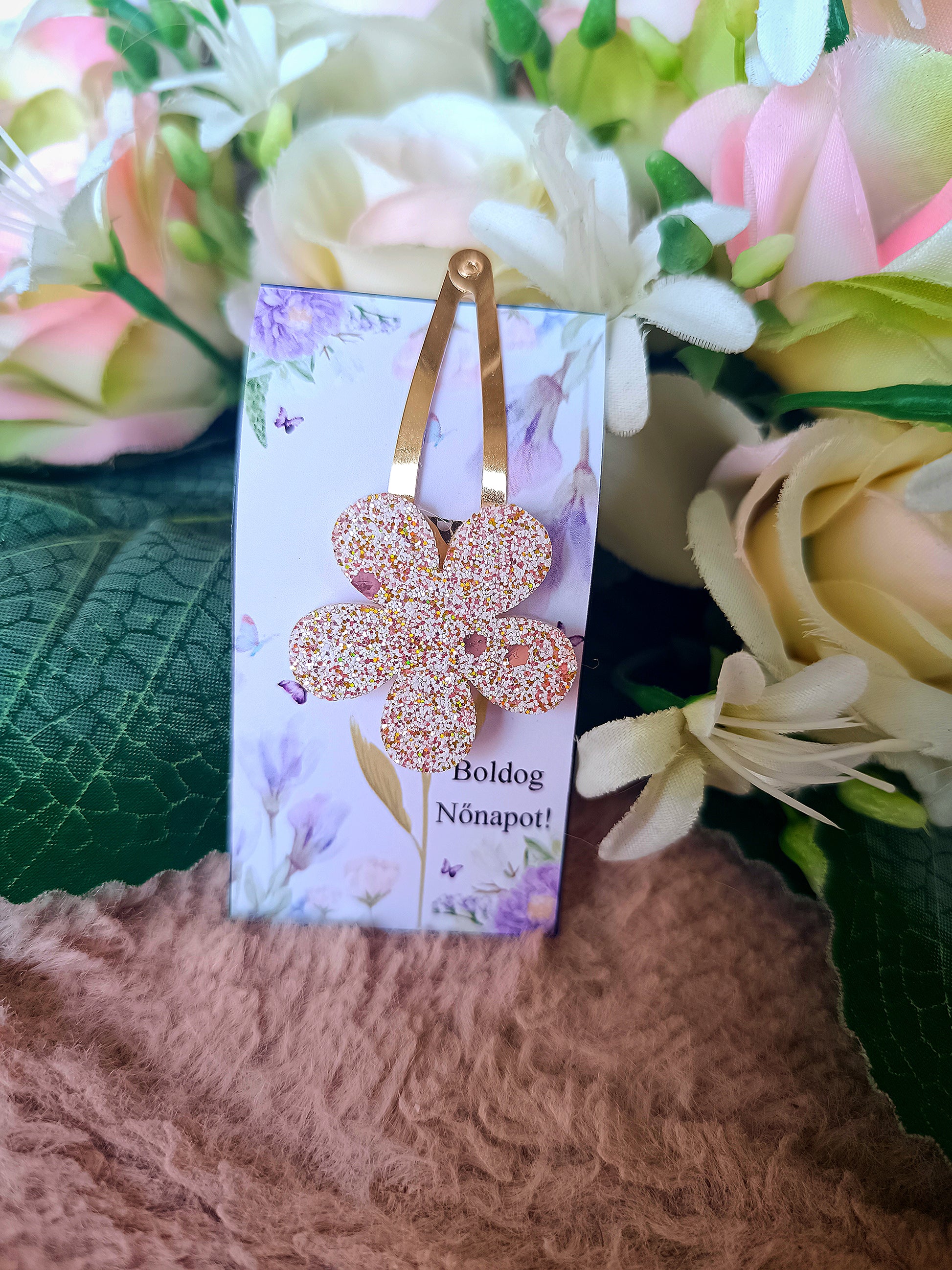 Nőnapi ajándék virágos csatt rózsaszín