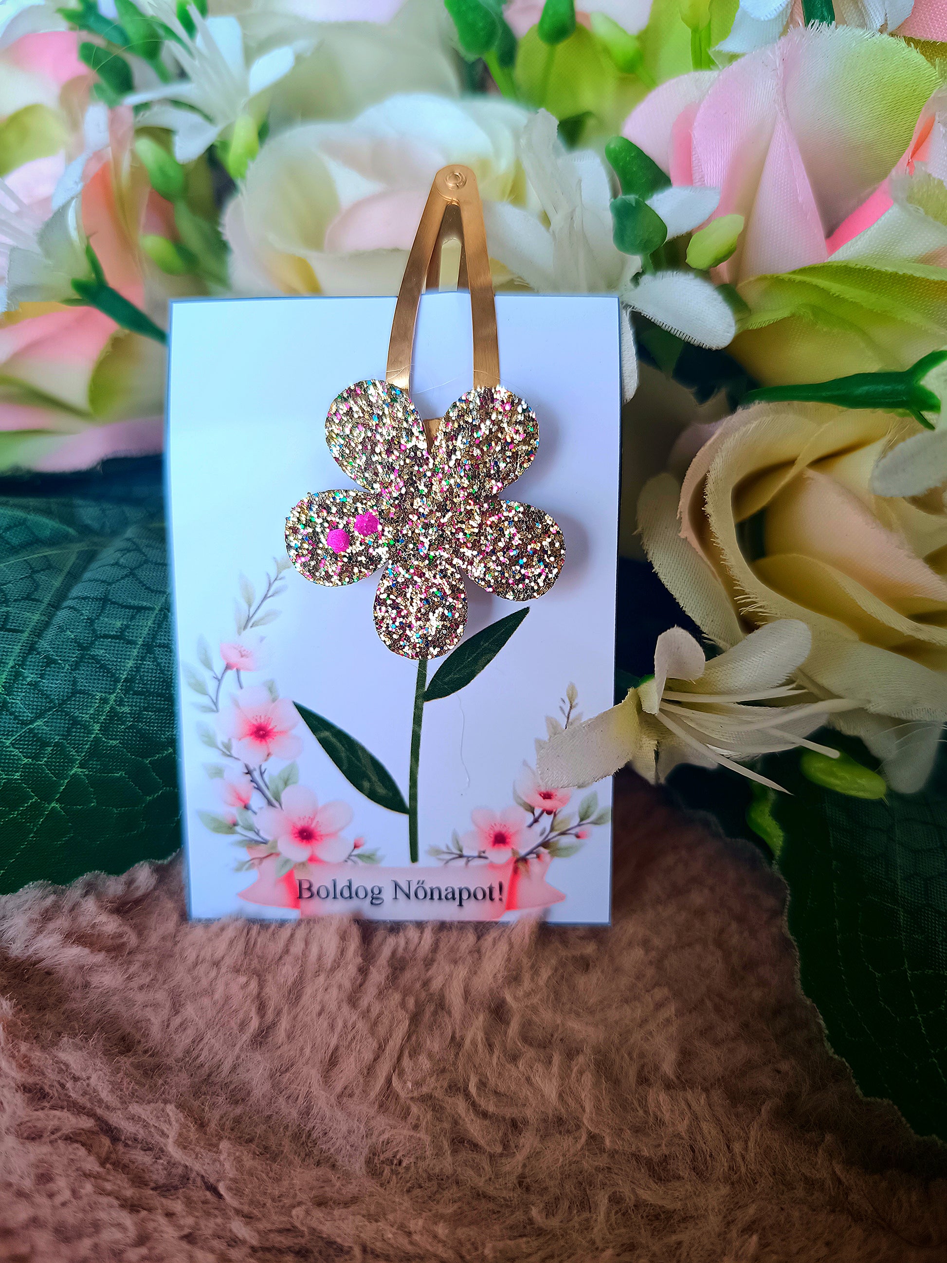 Nőnapi ajándék virágos csatt arany