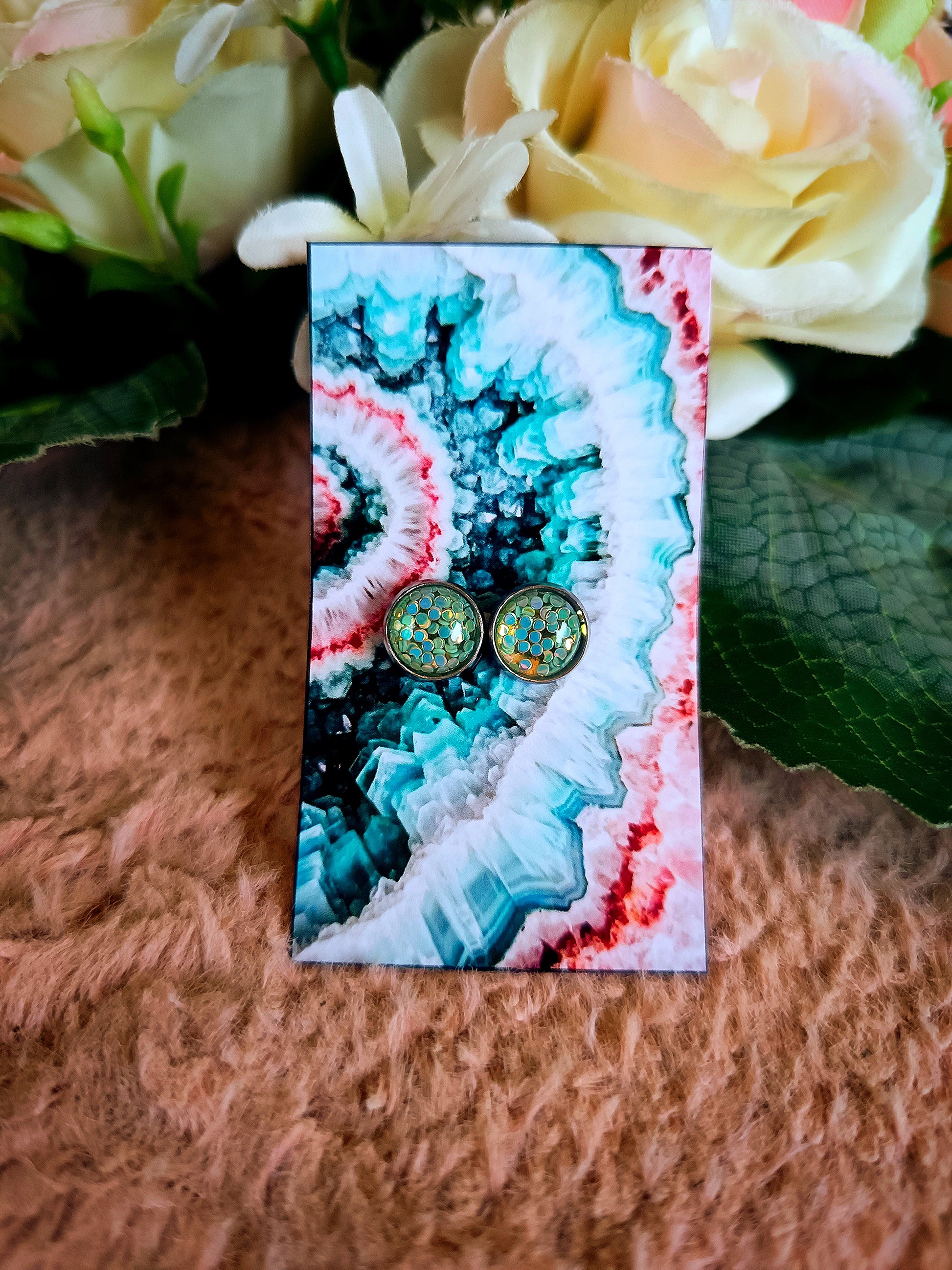 Világoskék konfetti bedugós nikkelmentes fülbevaló
